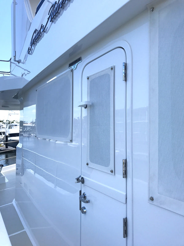Designed to snap on window covers to shield & protect the windows or portholes on a boat. Keep unwanted elements out from entering the boat's interior.