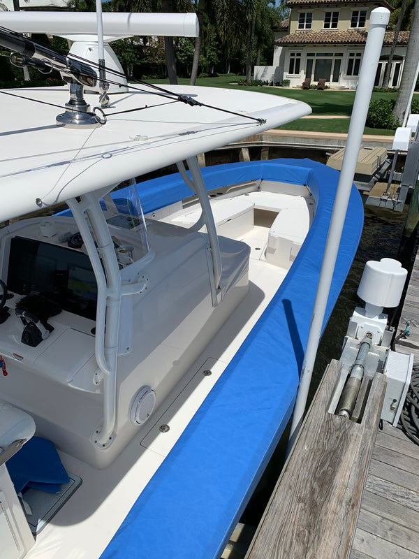 Center console boat covers are protective covers designed to shield the center console area of your boat from environmental factors like sunlight, rain, debris, and dust. These covers help prevent damage and fading caused by prolonged exposure to the elements, extending the life of your boat's interior components.